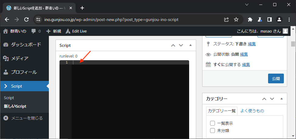 スクリプトの管理ができるになったら、エディタでスクリプトを記述してみましょう。